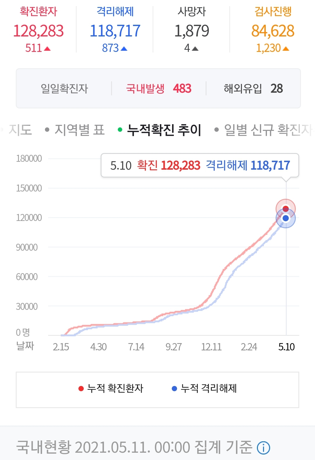 코로나19 집계(2021.5.11. 0시 기준)/:/ 정부 예방접종 이상반응 일일집계를 정례브리핑 발표문 hwp에서 삭제.. 본문