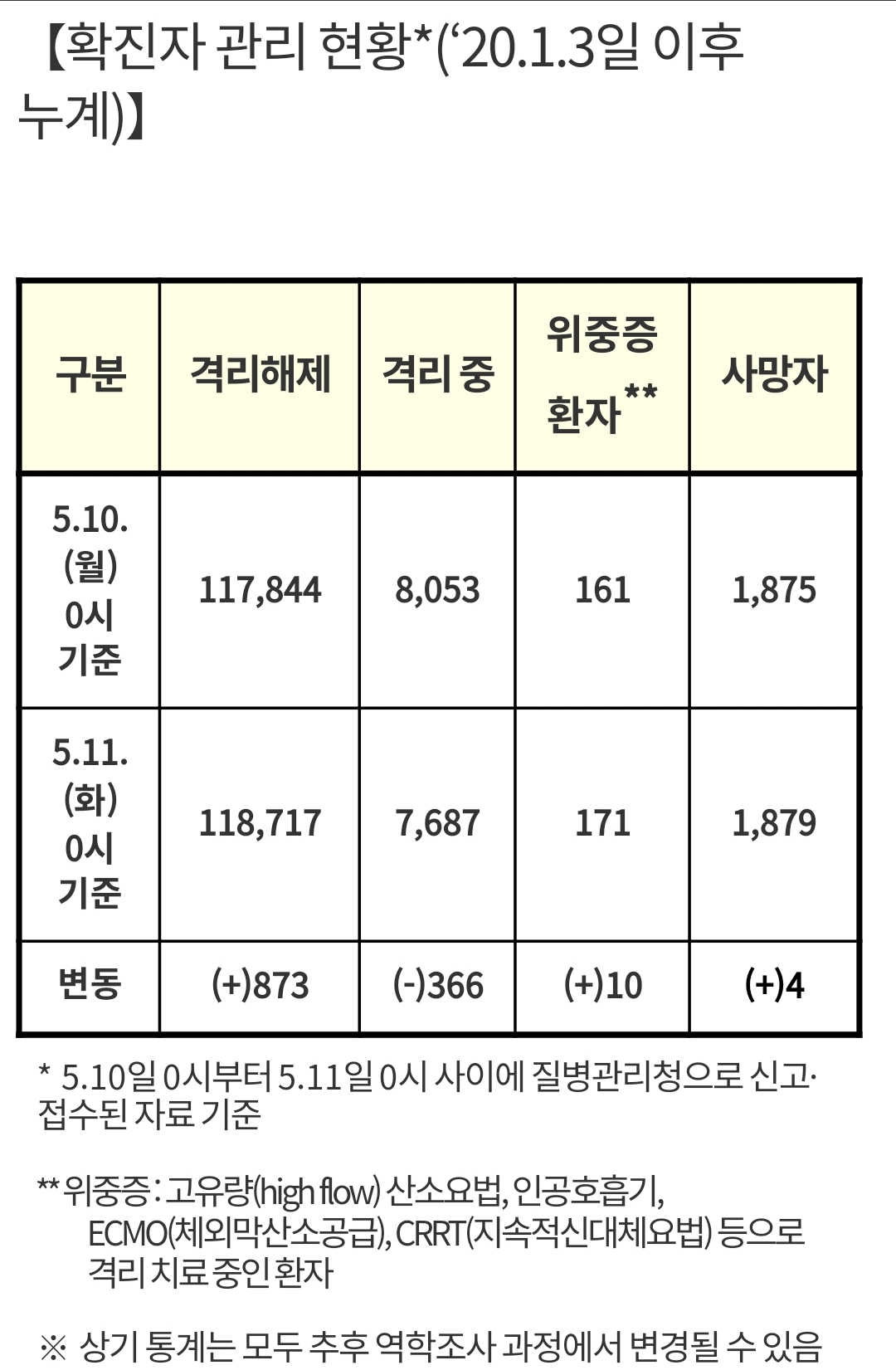 | 코로나19 집계(2021.5.8. 0시 기준)/:/ 701명 (0) | 2021.05.08 |