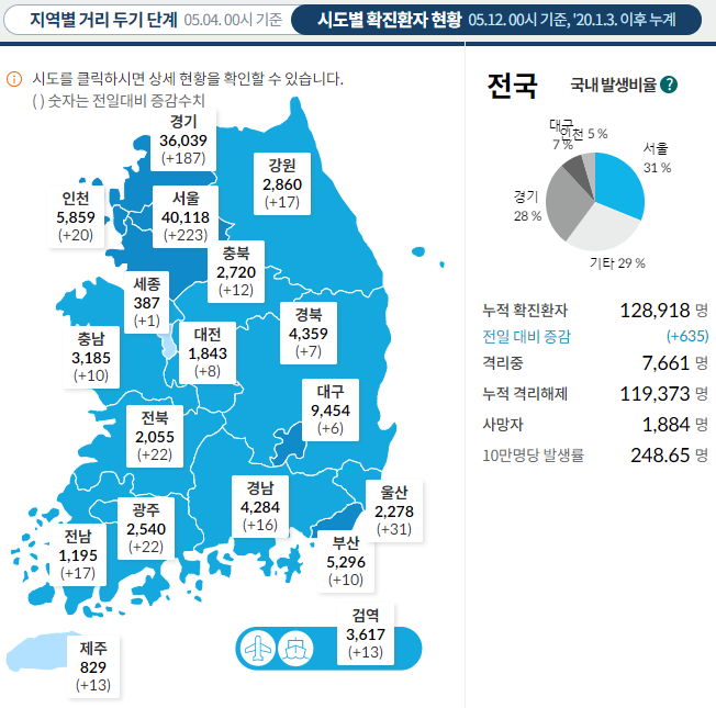 코로나19 집계(2021.5.12. 0시 기준)/:/ 635명 본문