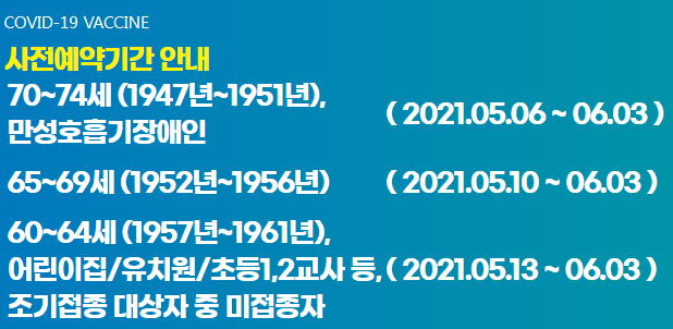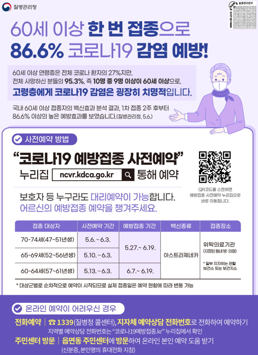 60세 이상 코로나19 예방접종이 시작되었습니다. 정부에서는 온라인 사전예약을 받습니다.