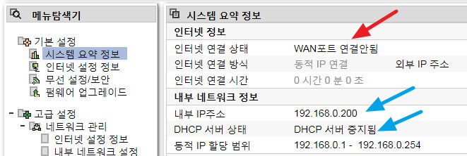 공유기 자신의 내부 네트워크 IP를 적당히 고정해줍니다.