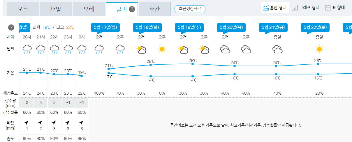 예상강수량이 너무 적은 게 흠이긴 흠입니다.