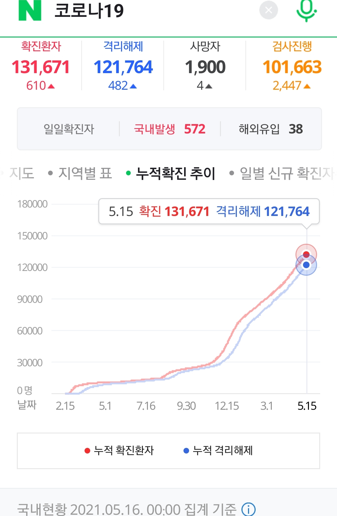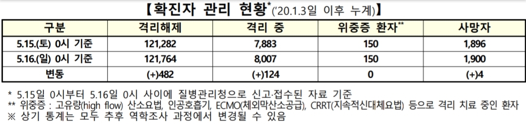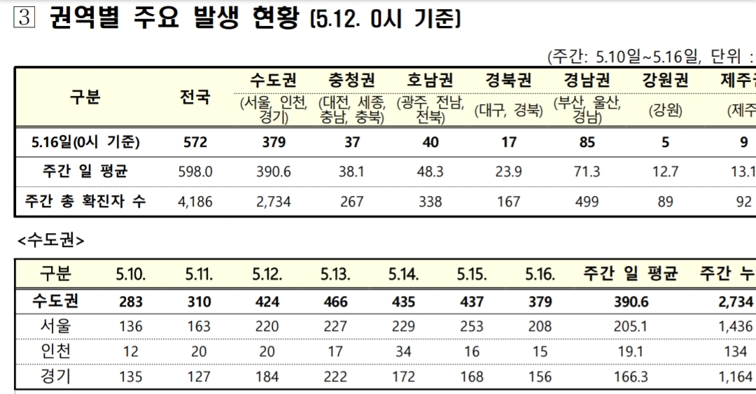 코로나19 집계(2021.5.16. 0시 기준)/:/ 610명 본문