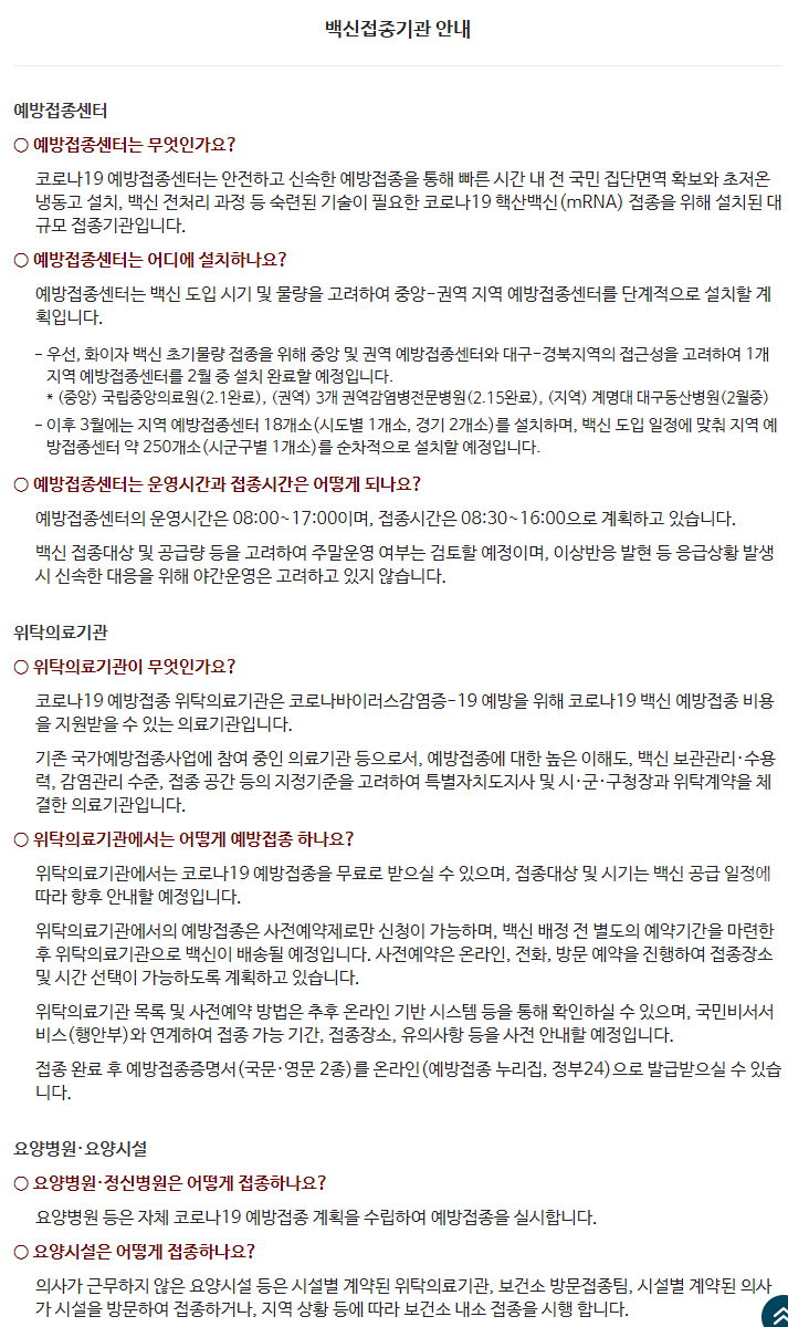 백신접종 장소 확인