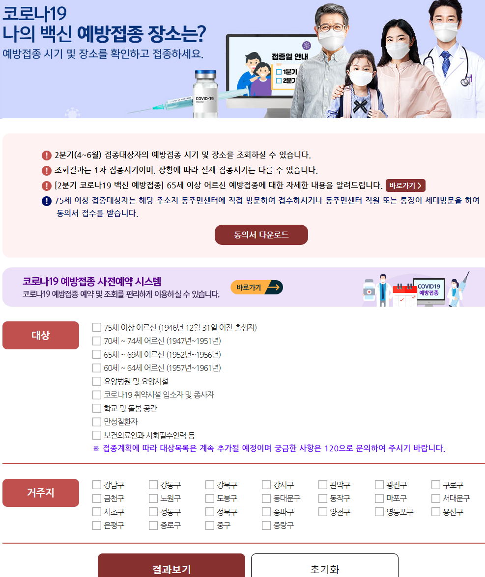 서울시, 코로나19 백신접종 장소 확인/:/ 예방접종관련 정부 홍보자료, 온라인 예약사이트와 전화 콜센터 정보 본문