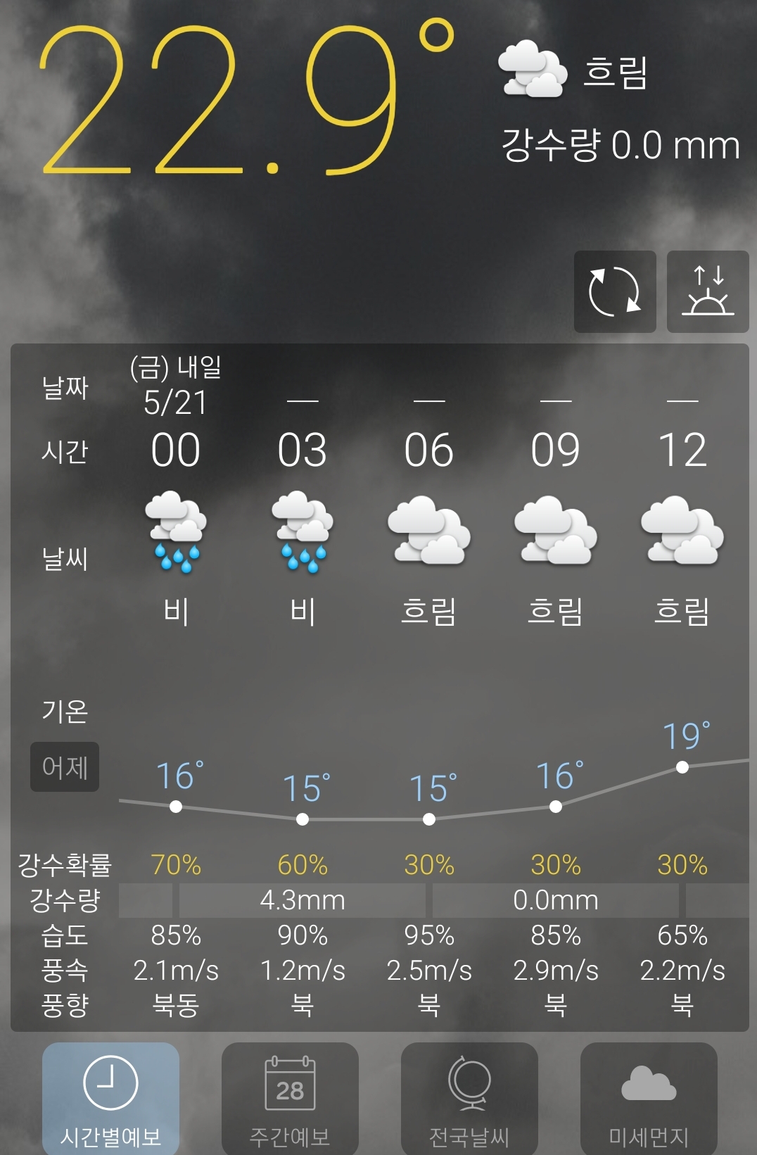 스마트폰을 사용하며 크게 바뀐 습관 하나가, 날씨앱을 자주 보는 것이다.