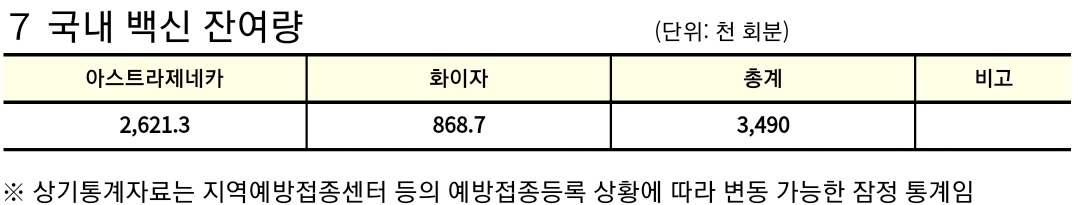 이상반응집계는 오늘은 나오지 않았습니다.
