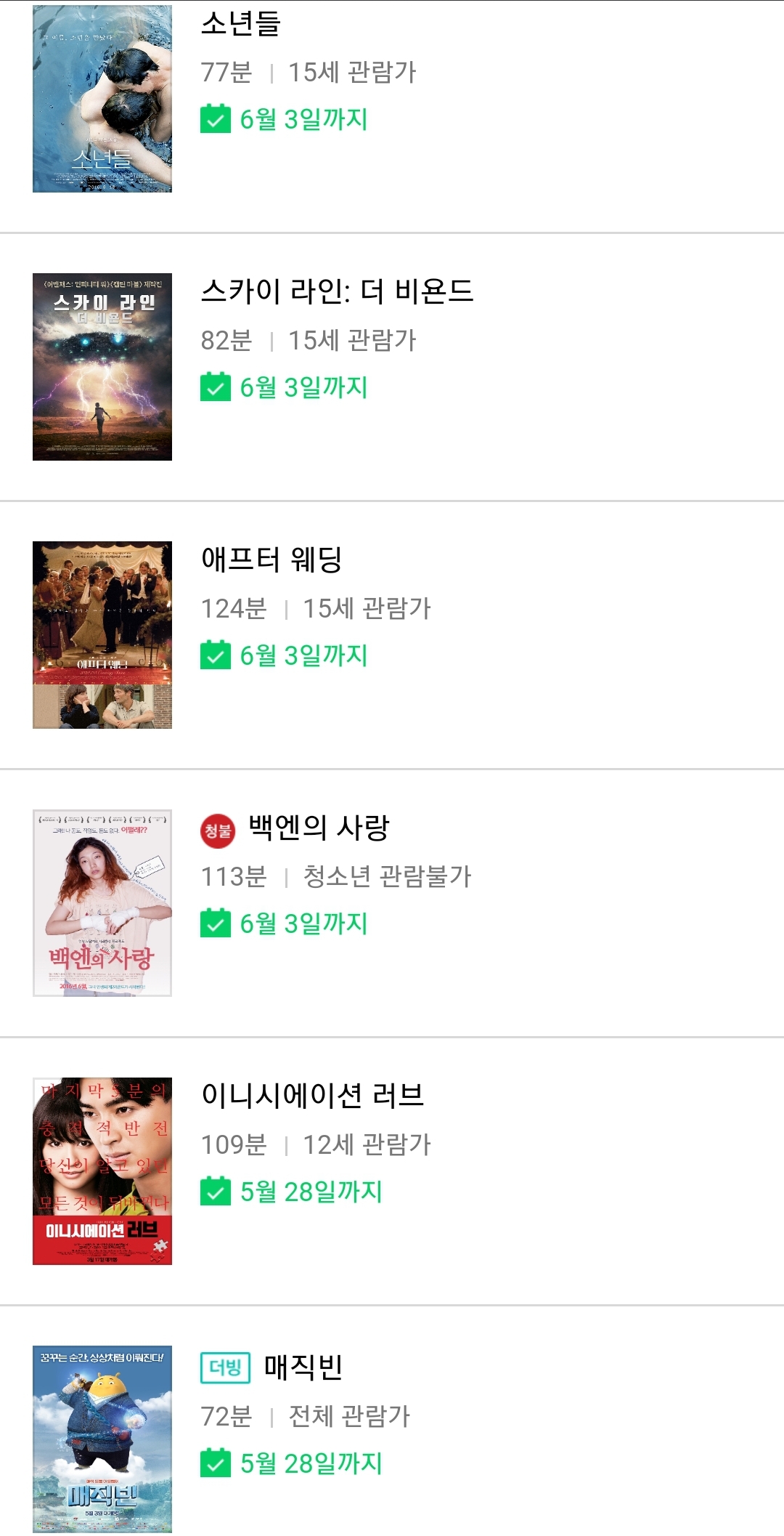 새로운 영화도 있고, 자주 올라오던 작품도 있네요. 구매영화는 받아두면 계속 볼 수 있습니다.