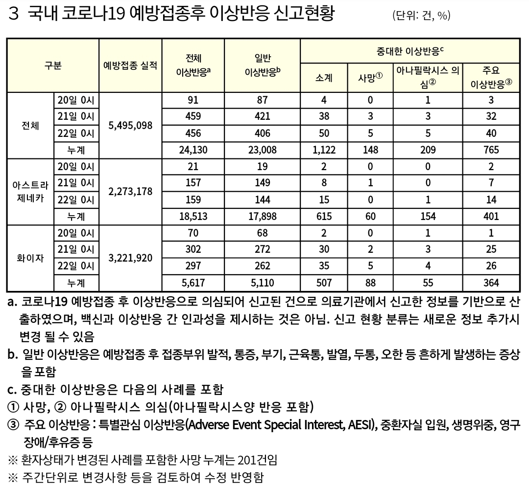 백신접종자 약 500만 명대 초반, 이상반응 사망접수 148명.