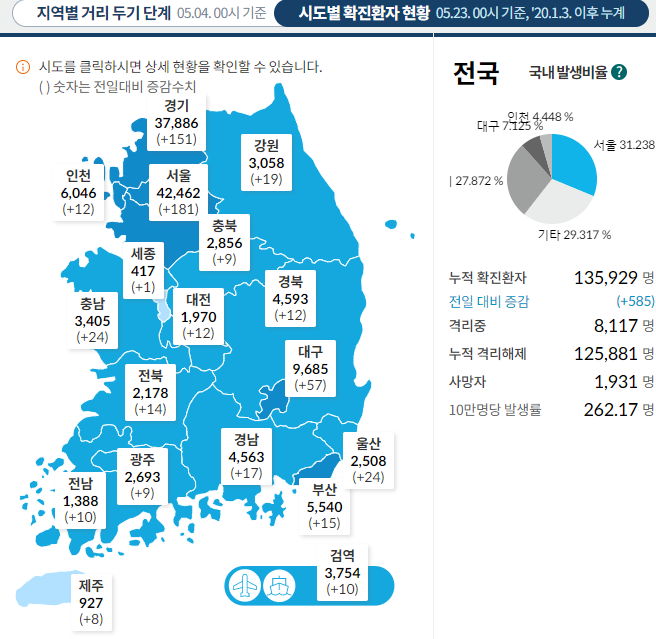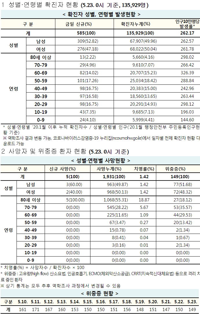 코로나19 집계(2021.5.23. 0시 기준)/:/ 585명 본문