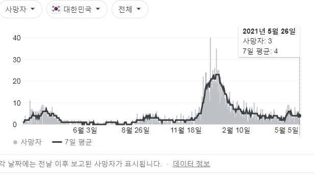| 코로나19 집계(2021.5.24. 0시 기준)/:/ 백신 효과분석, 코로나19감염사망자 상세통계, 백신접종이상반응(부작용) 사례 상세통계 등 (0) | 2021.05.24 |