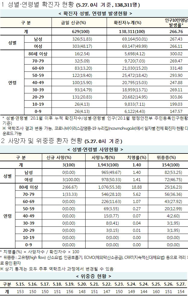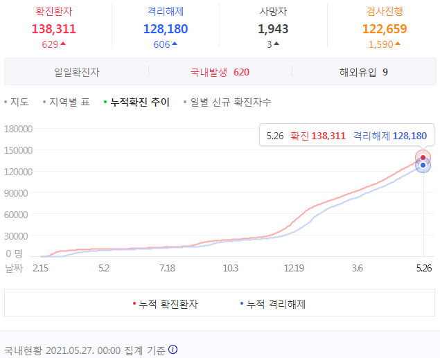 코로나19 집계(2021.5.27. 0시 기준) 본문