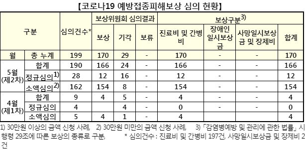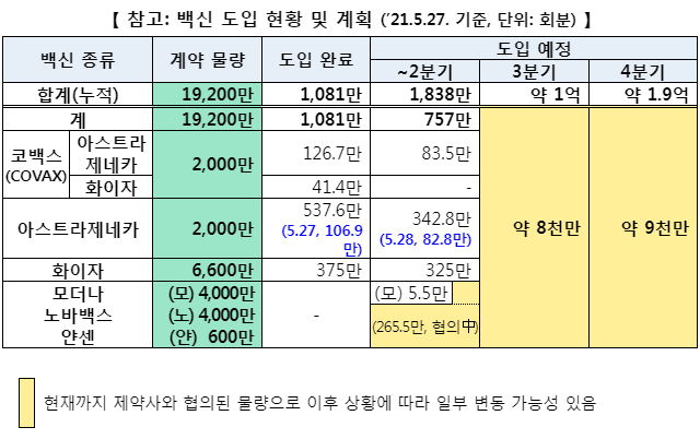 백신 도입 현황, 접종 현황 및 피해보상심의표 등