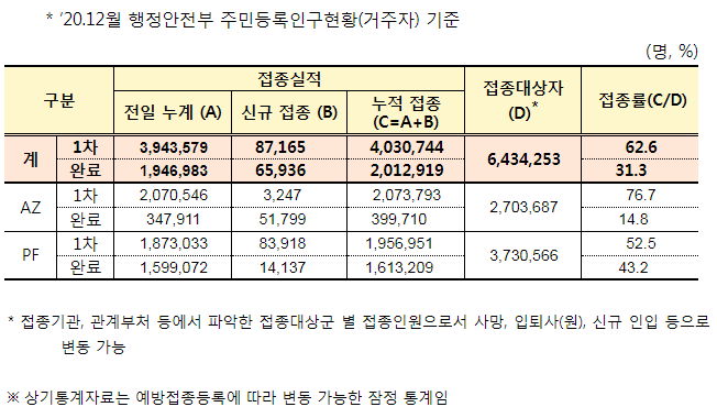 접종실적은 650만 명을 향하고 있고, 백신 잔여량은 440만 회분으로 충분합니다.