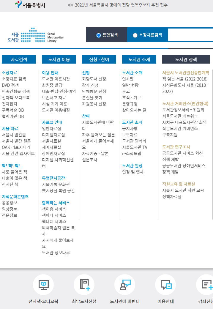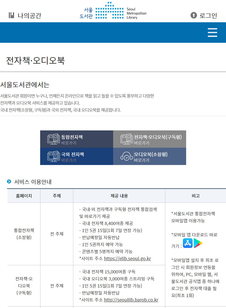 서울도서관(서울시립도서관) 전자책, 오디오북 본문