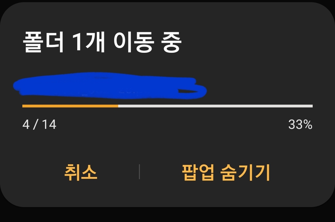 복사하거나 이동할 때, 특히 저장소 용량이 90%이상 차있을 때는,