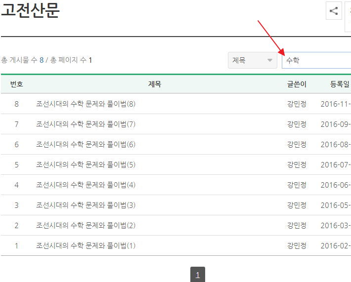 아래 링크한 웹페이지에서, 검색창에 "수학"이라고 치고 검색넣으면 됩니다.