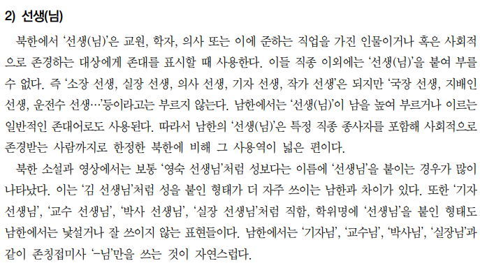 (3) 남북한 화행 차이로 인한 문제