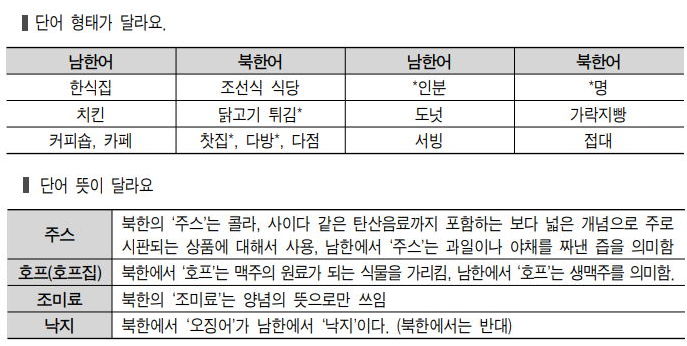 (1) 남북한 어휘 차이로 인한 문제
