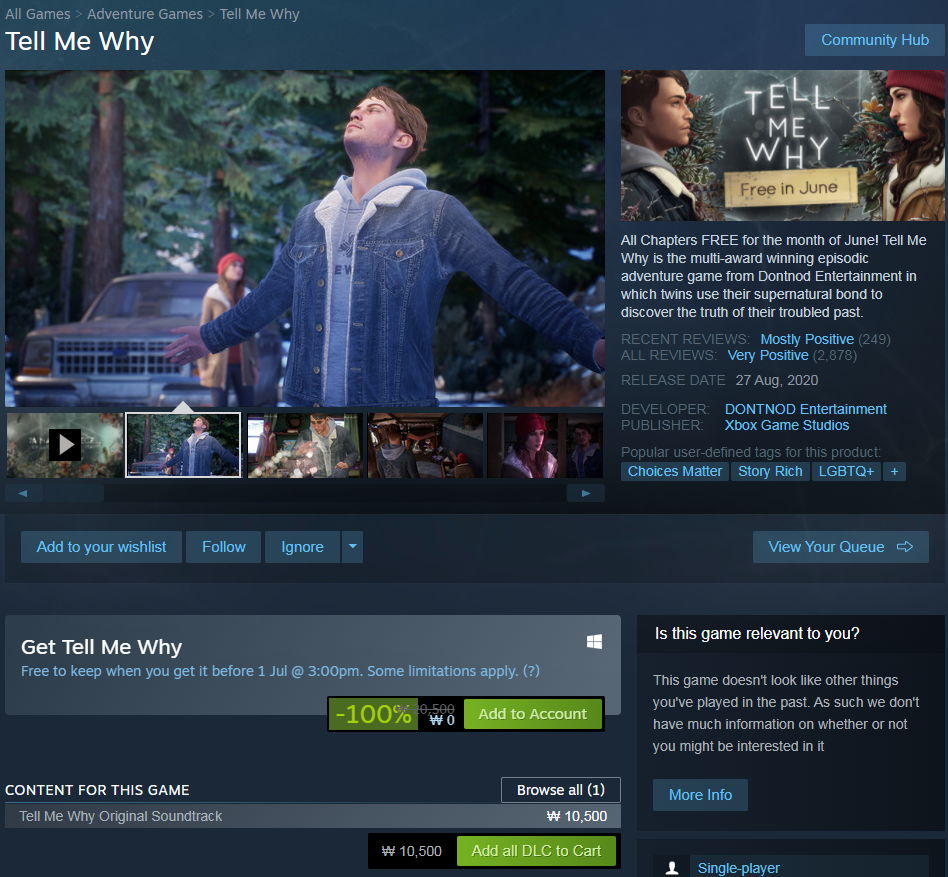 Save 100% on Tell Me Why on Steam