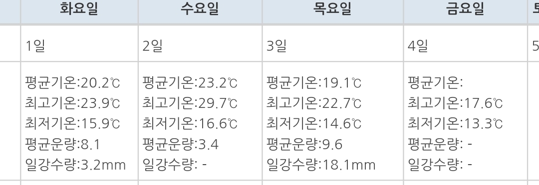 홈 > 관측자료 > 지상관측자료 > 과거자료 > 일별자료 |날씨|관측자료|지상관측자료|과거자료|일별자료 지상관측자료 과거자료 날씨달력 2021년 6월 과거 날씨 달력 일요일 월요일 화요일 수요일