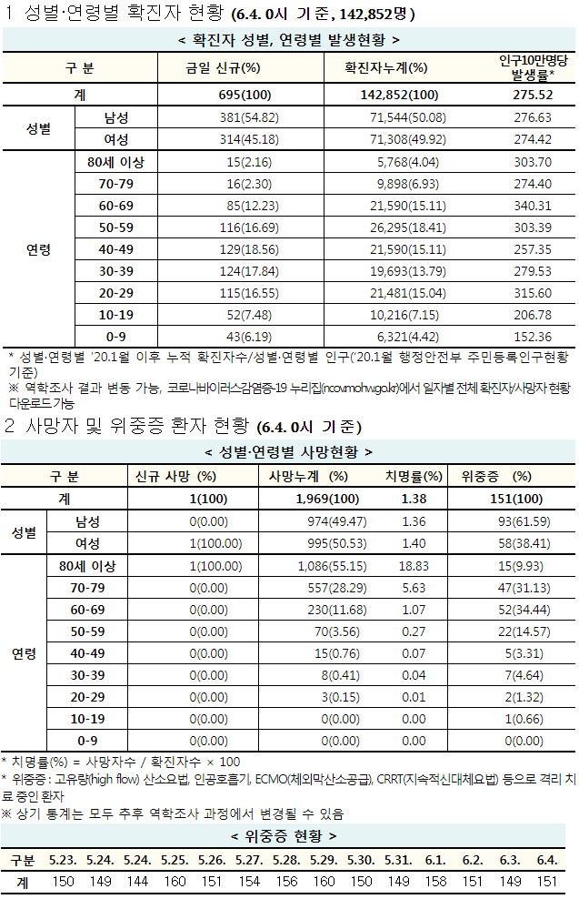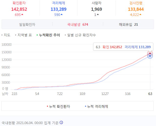 코로나19 집계(2021.6.4. 0시 기준)/:/ 695명 본문