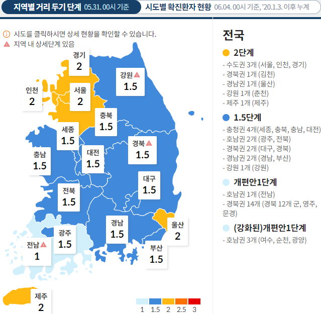 현재. 내일부터는 대구도 2단계.