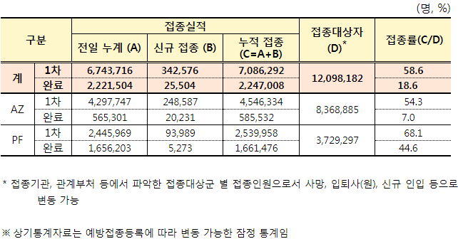 * 부작용(이상반응) 집계는 발표되지 않는 날입니다.