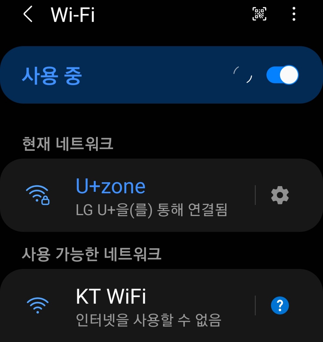 전화기가 LGU+로 출시돼서인지, U+망으로 번호이동한 다음 알뜰폰통신사 고객센터에 등록하지 않아도 잘 물리네요. (그리고 습관처럼 KT WiFi를 터치하니 당연히 안 되고 ^^a)