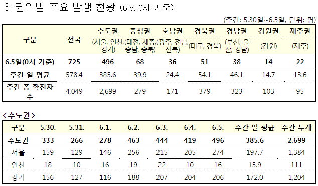 수도권(서울 경기 인천)은 504명 (지역인구 2592.6만 명)