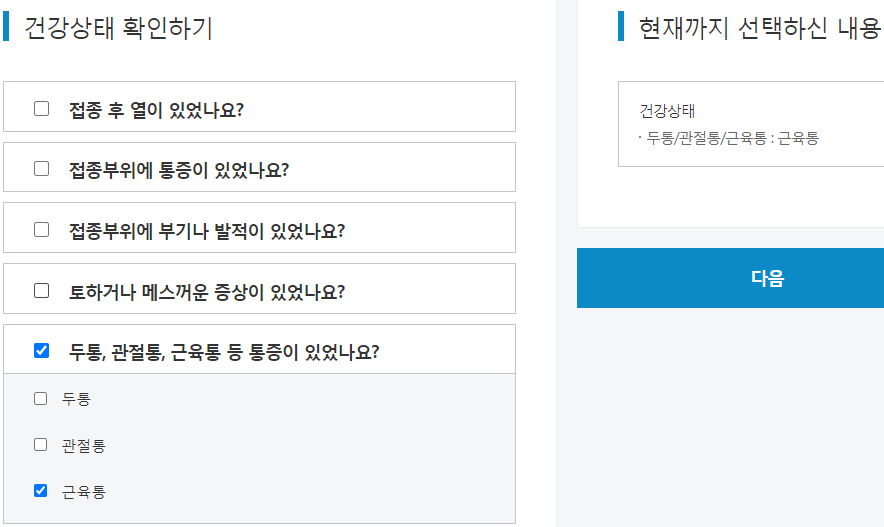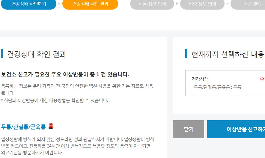통증도 주사맞은 부위가 아닌 경우, 그러니까 두통/관절통/근육통이라면 이야기가 다릅니다.