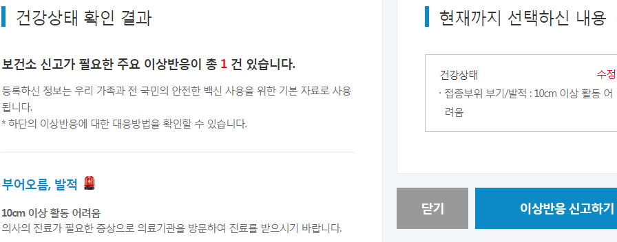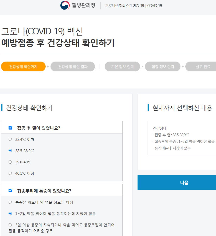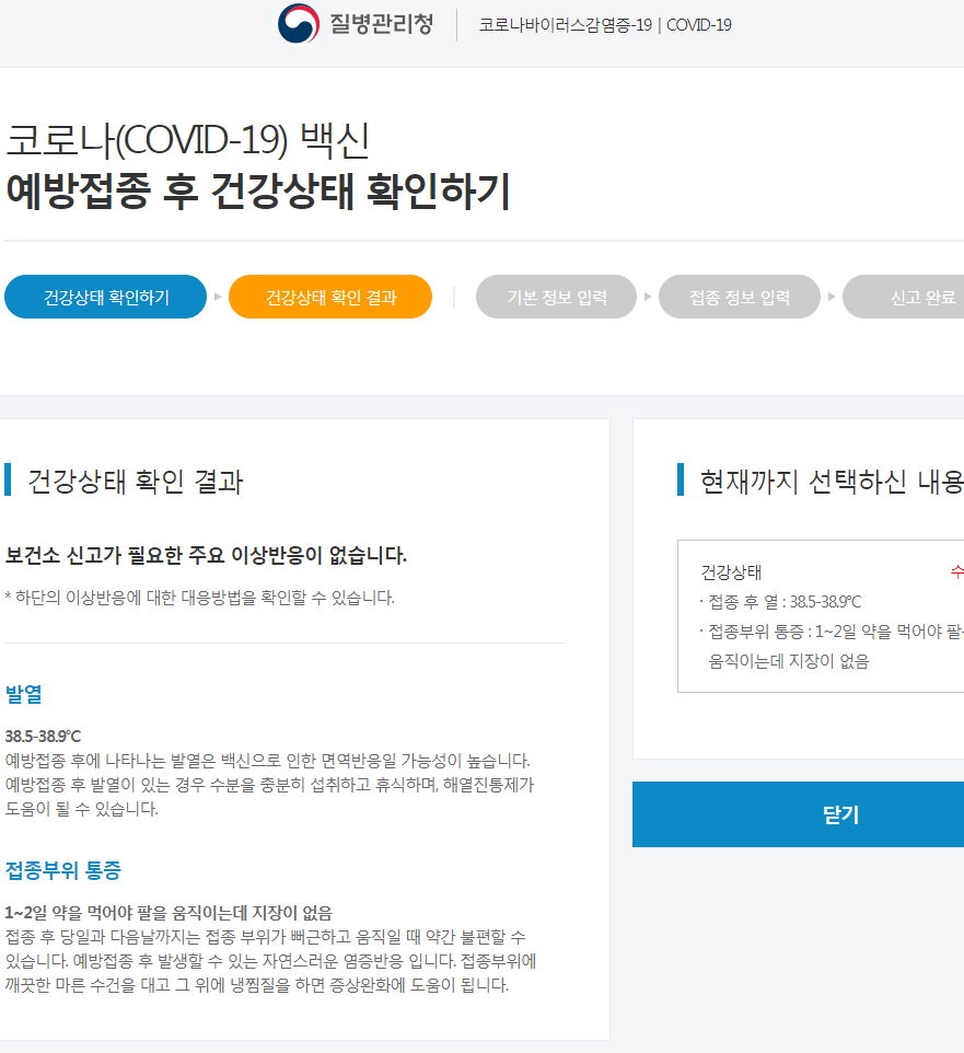예방접종 도우미 > 코로나19 예방접종 > 예방접종 후 건강상태 확인하기