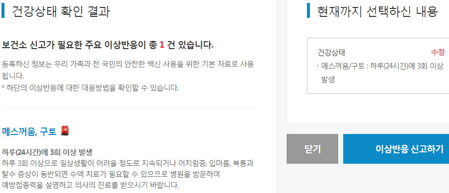 끝으로, 알레르기 반응으로 분류되는 증상은 무조건 신고 후 판단해서 병원가세요..라네요.