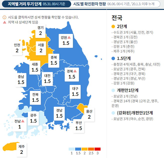 아래 그림은 5월 31일 기준이라고 적혀 있습니다. 이것도 갱신을 안 해주네요.. 지금 각 지자체에서 적용 중인 것과는 다른 곳도 있습니다. 대강만 보세요. 주의.