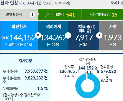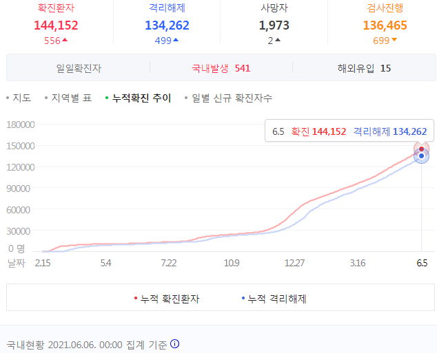 코로나19 집계(2021.6.6. 0시 기준)/:/ 556명 본문