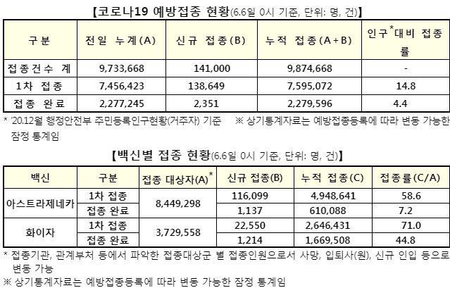 | 코로나19 집계(2021.6.8. 0시 기준)/:/ 454명/:/ 변이바이러스 현황, 이상반응집계 및 심의결과/:/ 1075만 명 접종. (0) | 2021.06.08 |