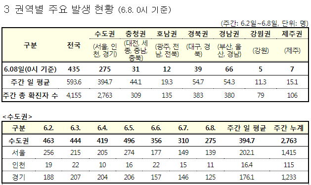 수도권(서울 경기 인천)은 282명 (지역인구 2592.6만 명)