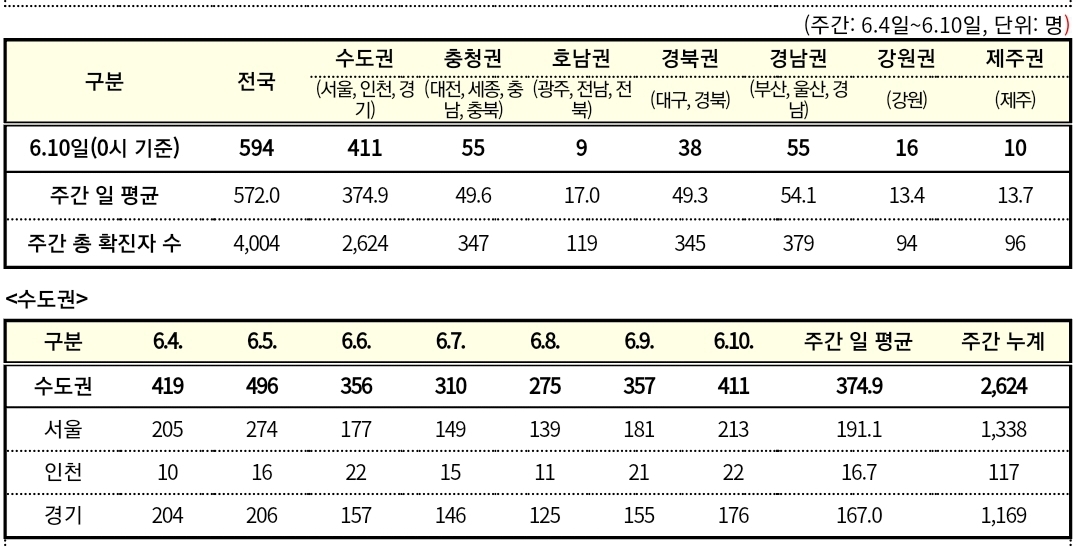 수도권(서울 경기 인천)은 415명 (지역인구 2592.6만 명)