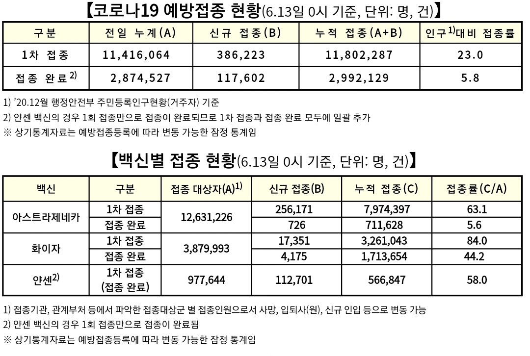 예방접종 이상반응집계는 나오지 않은 날입니다.