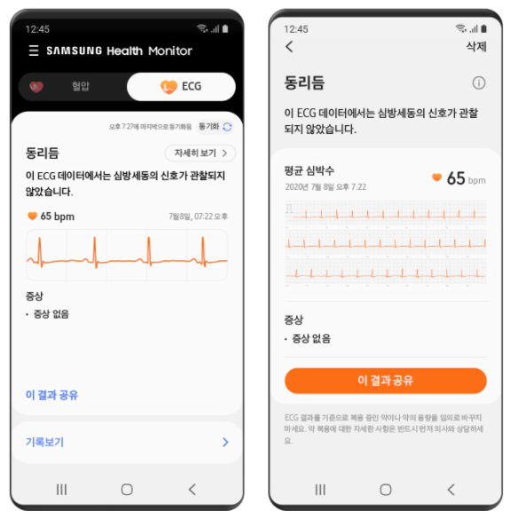 삼성 공홈의, 스마트워치로 혈압측정, ECG측정하는 올바른 방법 설명