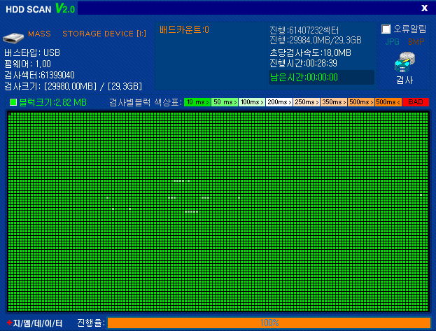 백업하던 중 파일복사를 못하는 에러가 났고, 전에 전화기에서도 파일이동 중 에러난 적이 있기에, 포맷하고 섹터검사해봤다.