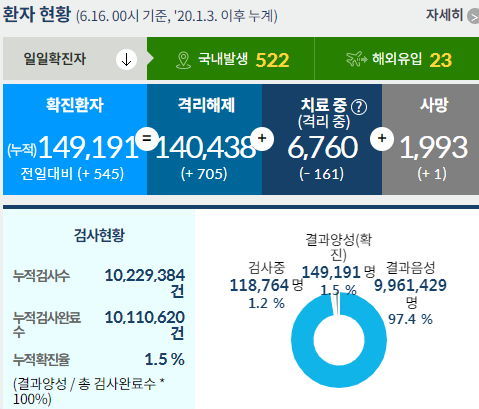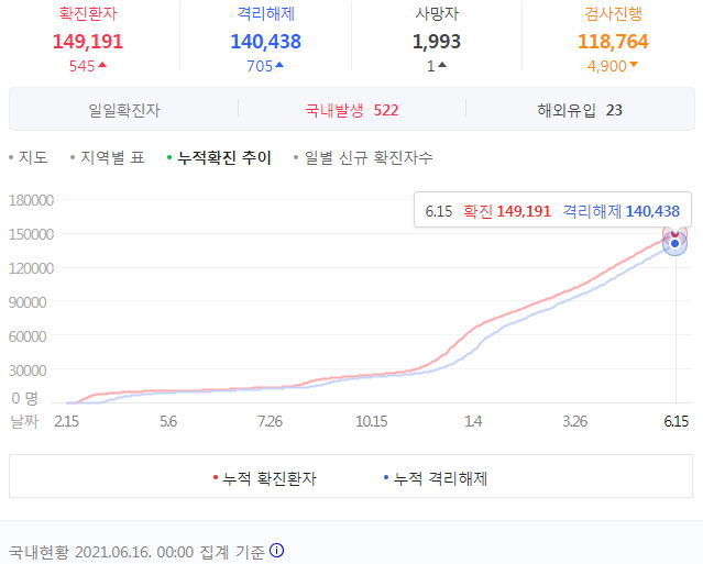 코로나19 집계(2021.6.16. 0시 기준)/:/ 545명 /:/ 예방접종과 델타(인도)변이 본문