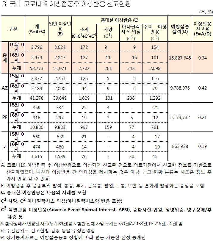 | 코로나19 집계(2021.6.14.0시 기준)/:/ 399명! /:/ 백신이상반응(부작용) 통계 및 심의결과, 국내외 관련통계 (0) | 2021.06.14 |