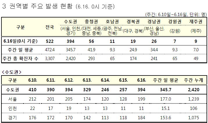 수도권(서울 경기 인천)은 403명 (지역인구 2592.6만 명)