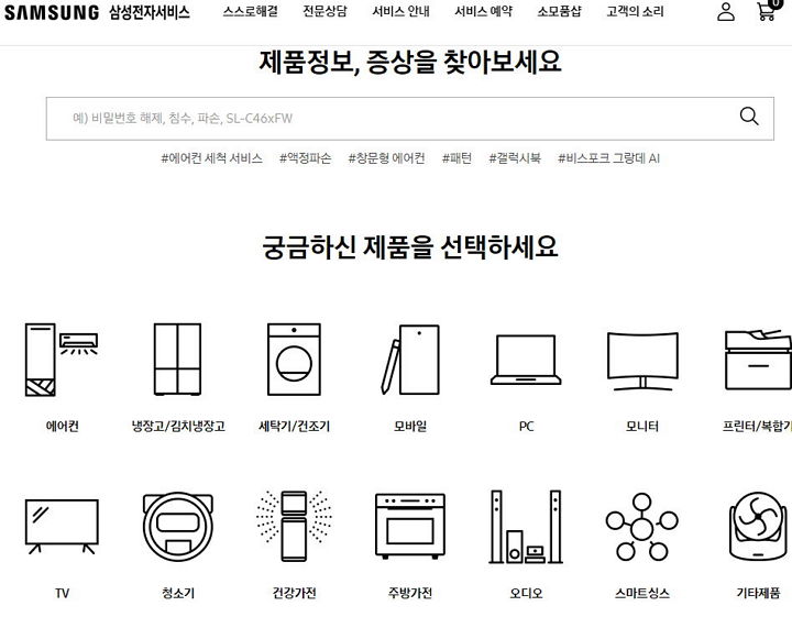 서비스센터 검색도 여기서 할 수 있습니다. 그냥 네이버맵에서 삼성전자서비스라고 쳐도 나오고 그게 더 편하지만.