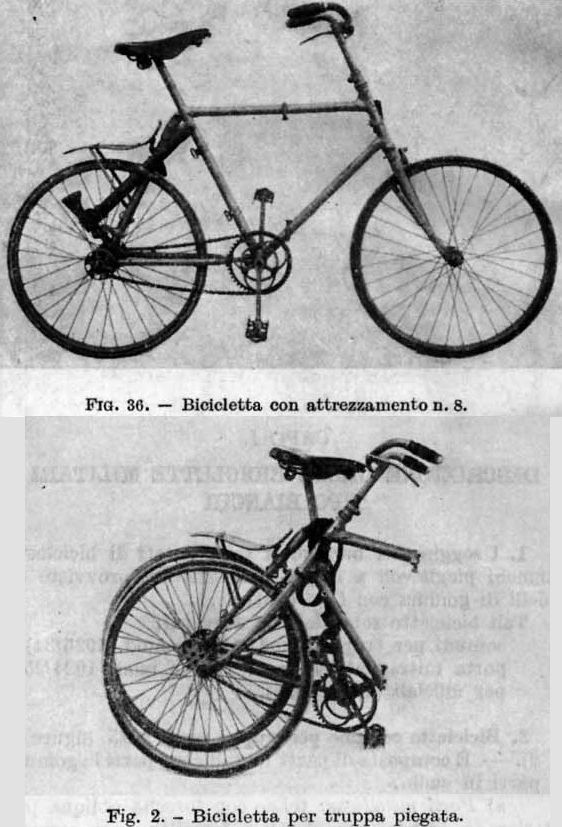 당시 이탈리아 산악부대원(알프스 산지가 담당지역)들이 자전거를 접어서 지고 가는 모습이 나온 글.