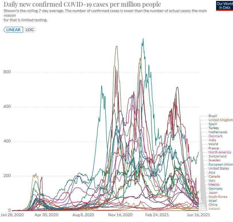 요즘 각국 신규확진자와 신규사망자가 확 줄었습니다.