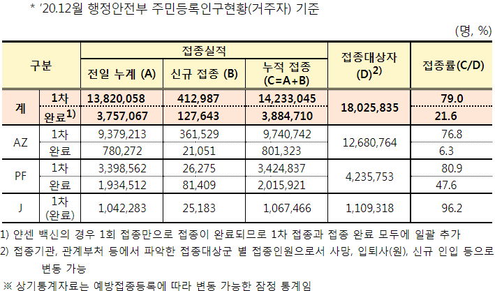 아스트라 1차 접종 76만명, 2차는 화이자 맞는다