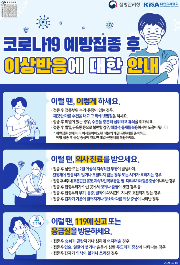 정부 발표 통계를 보면, 부작용의 절대 다수는 접종 3일 안에 나옵니다. 가벼운 백신앓이는 그걸로 끝나고 건강해진다고 합니다.