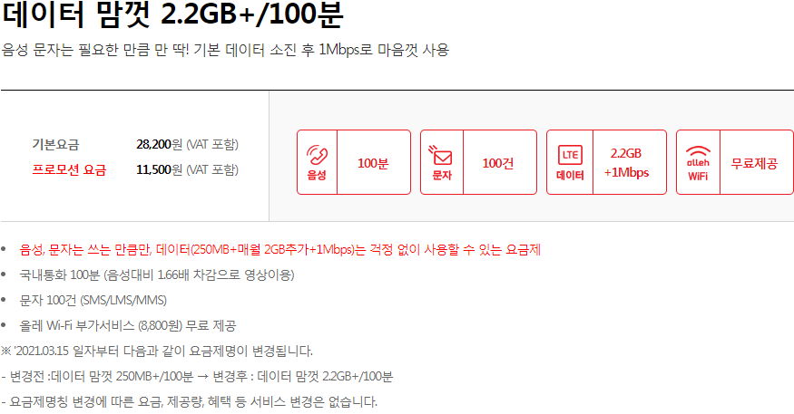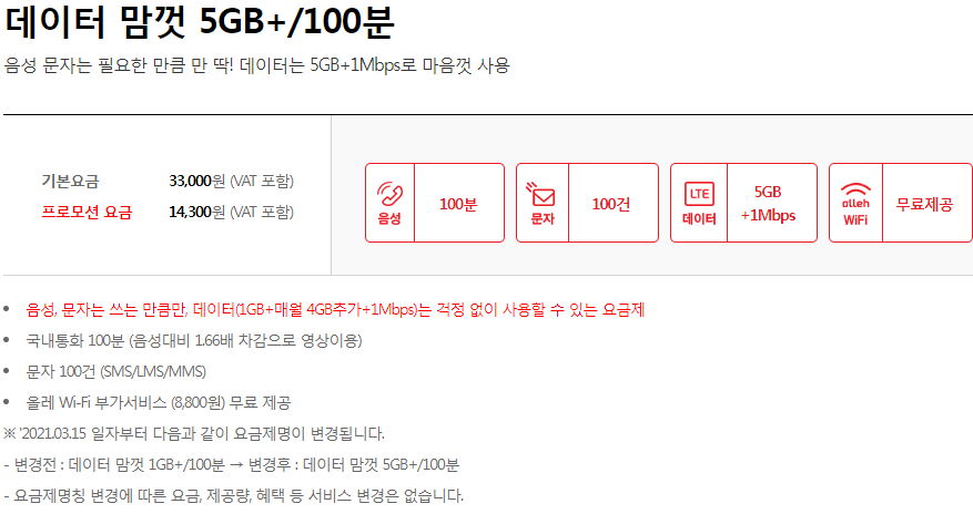ㅡ 12개월한정 할인이 아니라 계속 이 요금입니다.